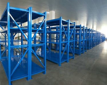 中型货架通常用于中小件、较重货物存储,单层承重预设在500kg-800kg范围内。广泛应用于以人力、手工搬运、存储及拣选作业为主的各种场合存储与展示等。