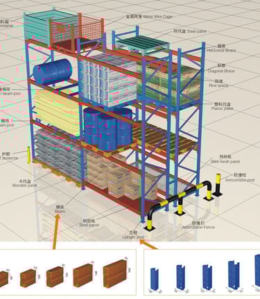 展示我们多样化的仓库货架款式和实景照片